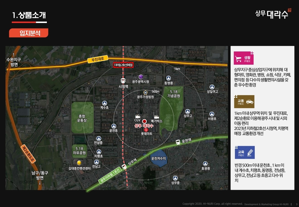 상무대라수도 아파텔, 상가 등으로 구성
